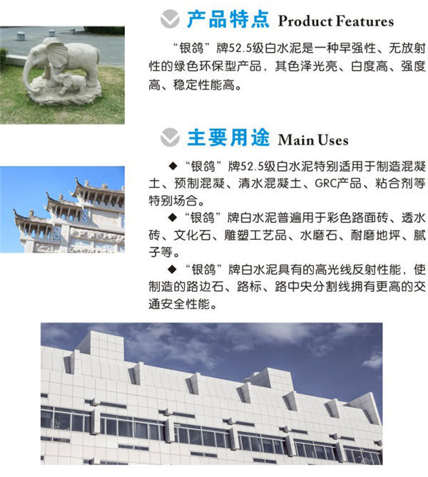 “銀鴿”牌52.5級白水泥